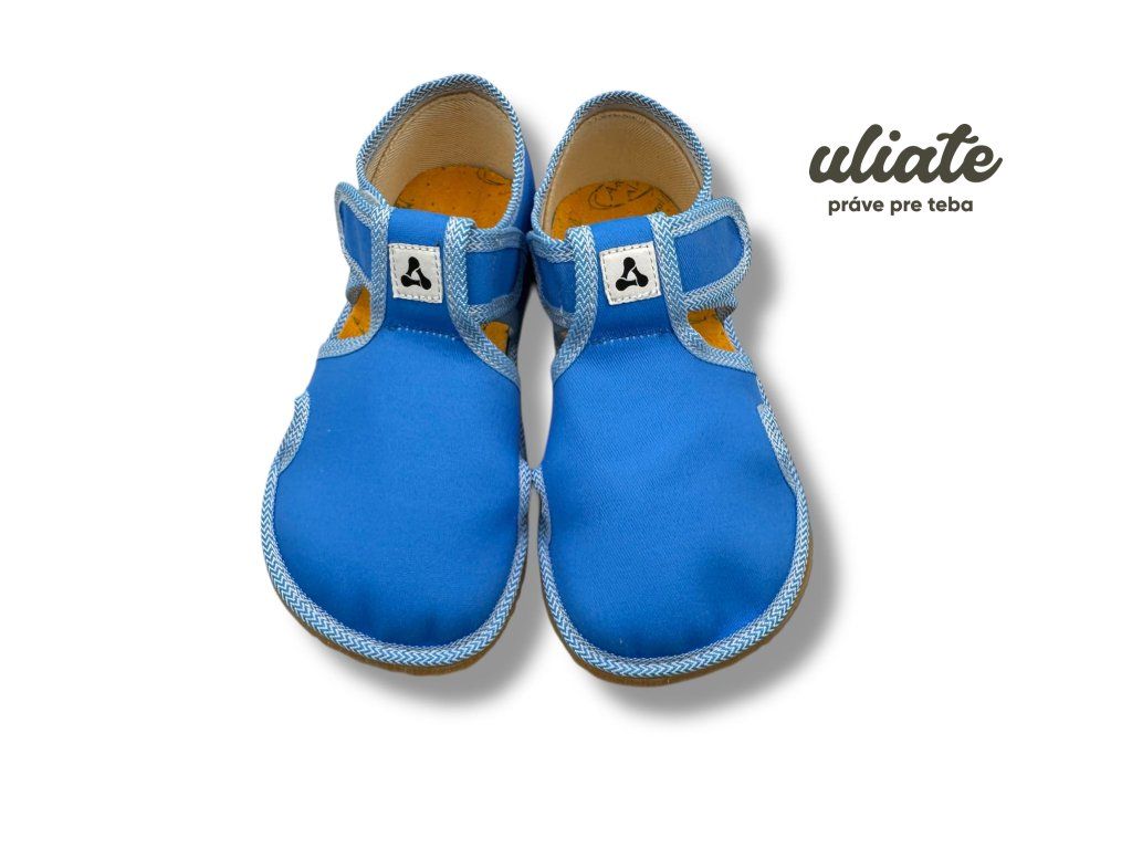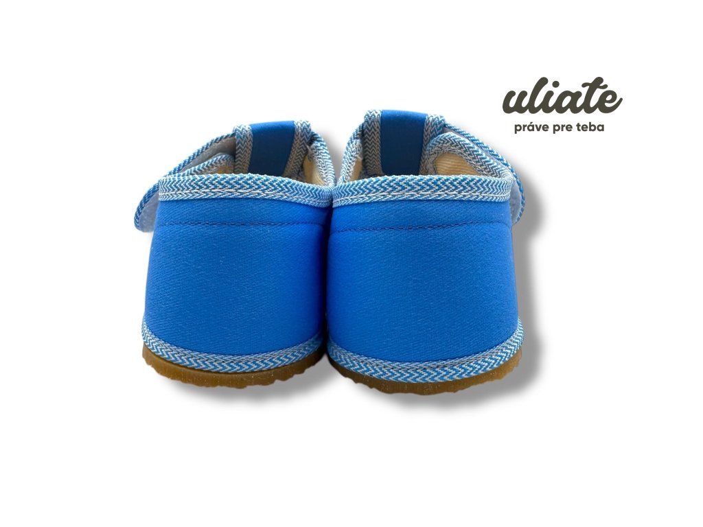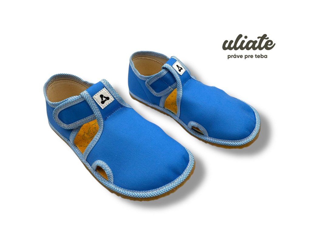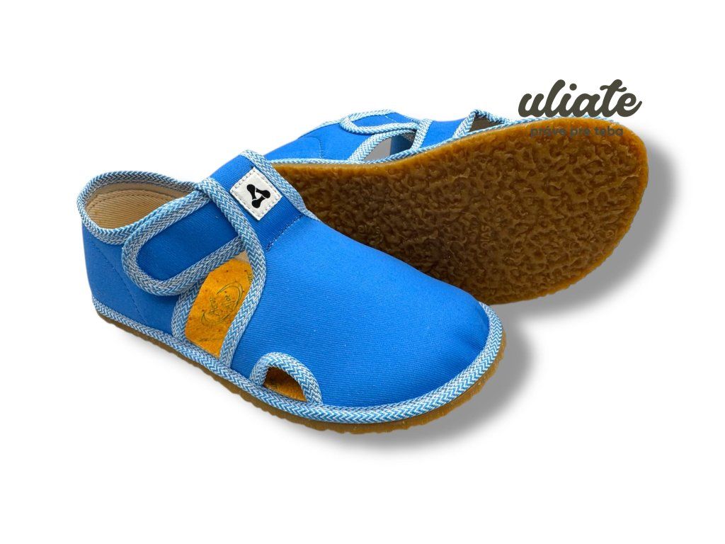 Ľahké textilné barefoot papuče do škôlky, školy aj na doma. Široká špička, ohybná 4 mm podrážka, spevnená päta a jednoduché zapínanie na suchý zips – sadnú ako uliate.