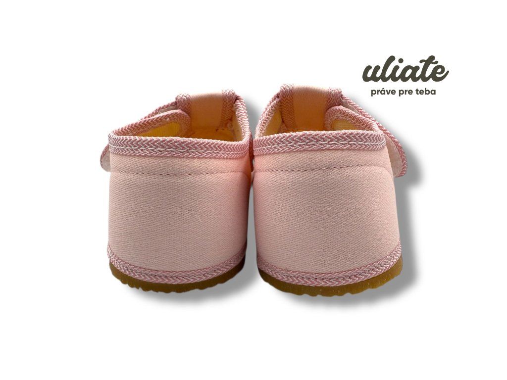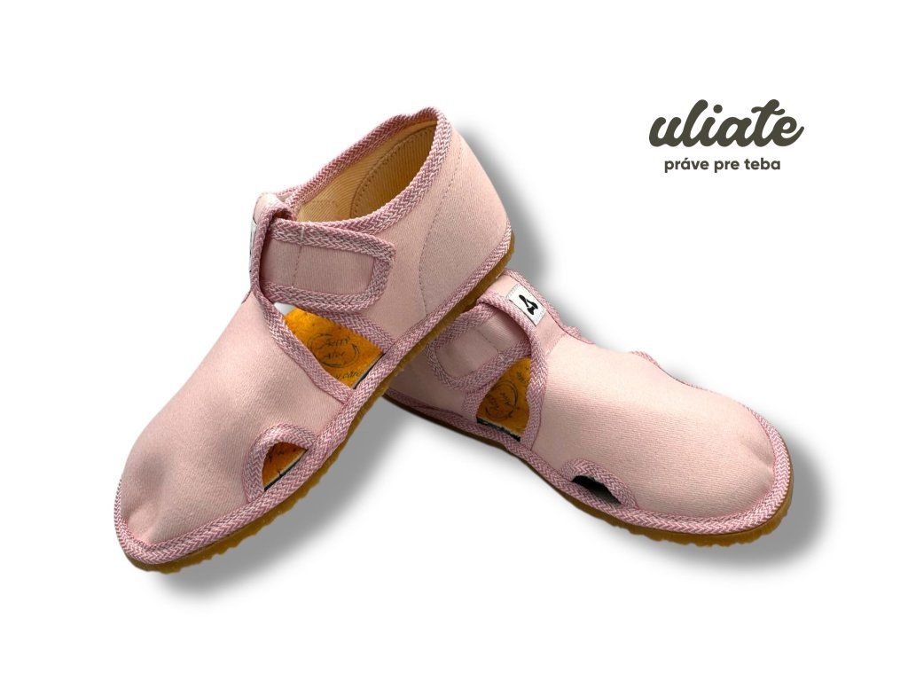 Antal Rascal Basic Pink sú detské barefoot papuče navrhnuté na každodenné nosenie v interiéri. Priedušný textil pomáha udržať pohodlie počas dňa, mäkká vyberateľná stielka je príjemná na dotyk a flexibilná podrážka podporuje prirodzený pohyb chodidla. Praktický suchý zips uľahčí obúvanie aj menším deťom a spevnená päta pomáha držať nohu stabilnejšie pri behaní v škôlke či škole.