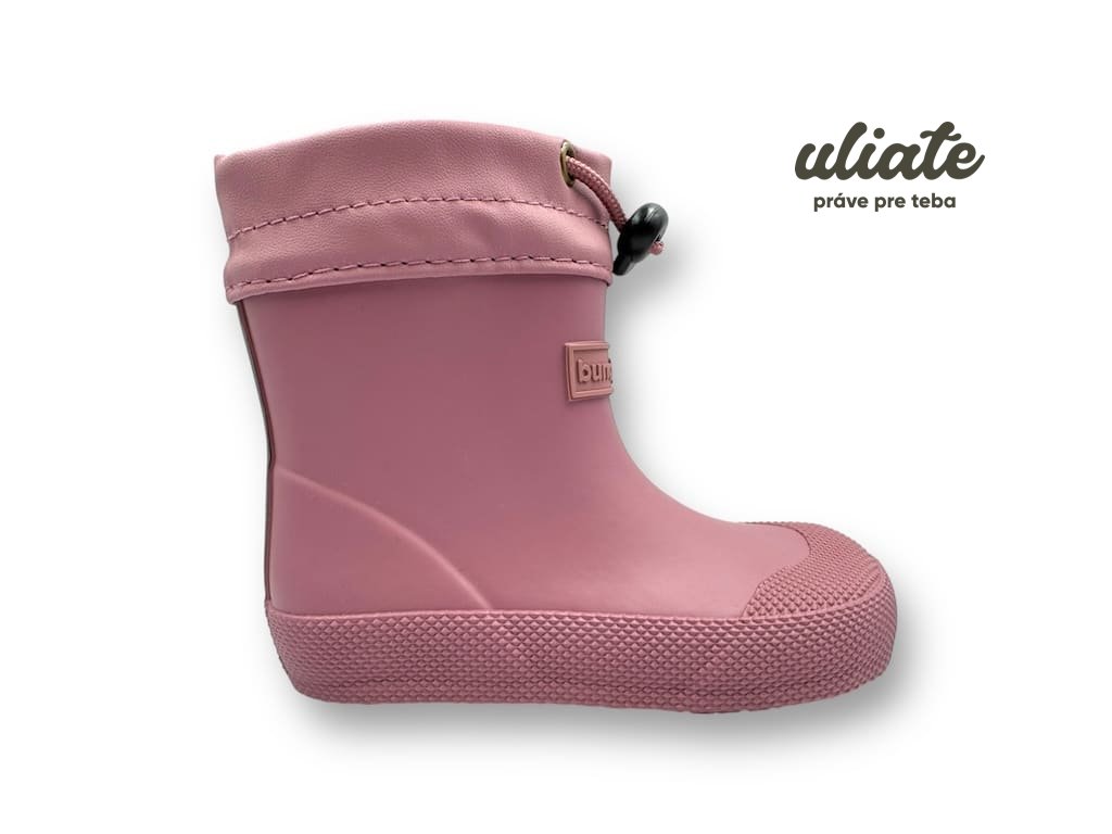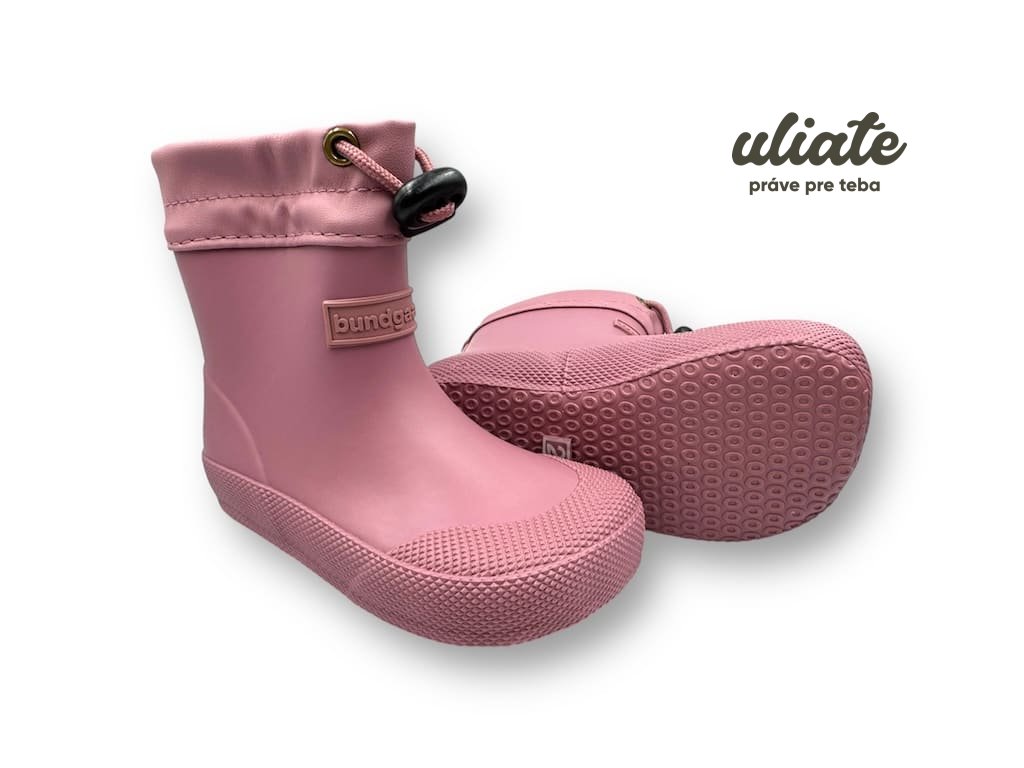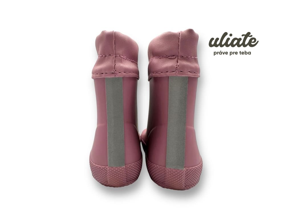 Nepremokavé barefoot gumáky v odtieni Nostalgia Rose z prírodnej gumy s 0 mm dropom, širokou špičkou a vyberateľnou textilnou vložkou – bezpečie a pohodlie do daždivých dní.