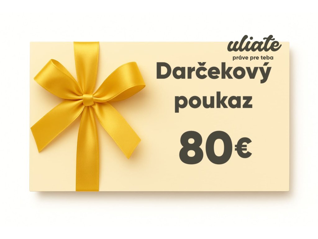 - Typ produktu: darčekový poukaz ULIATE v hodnote 80 € (elektronický kód).