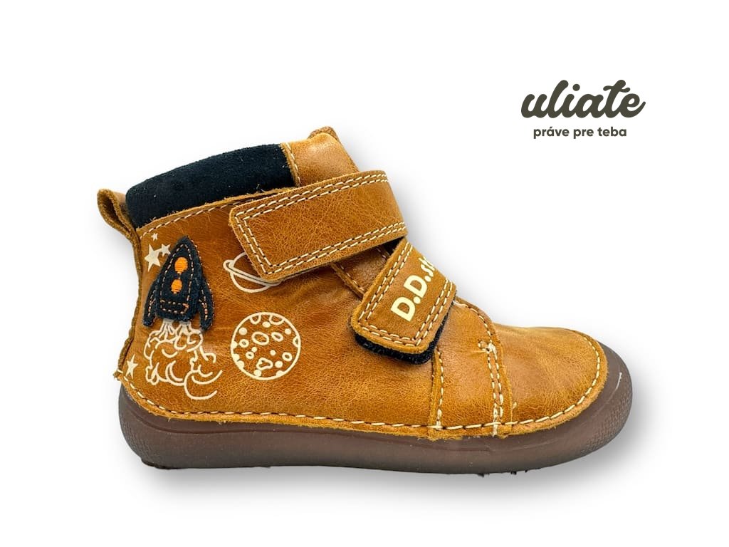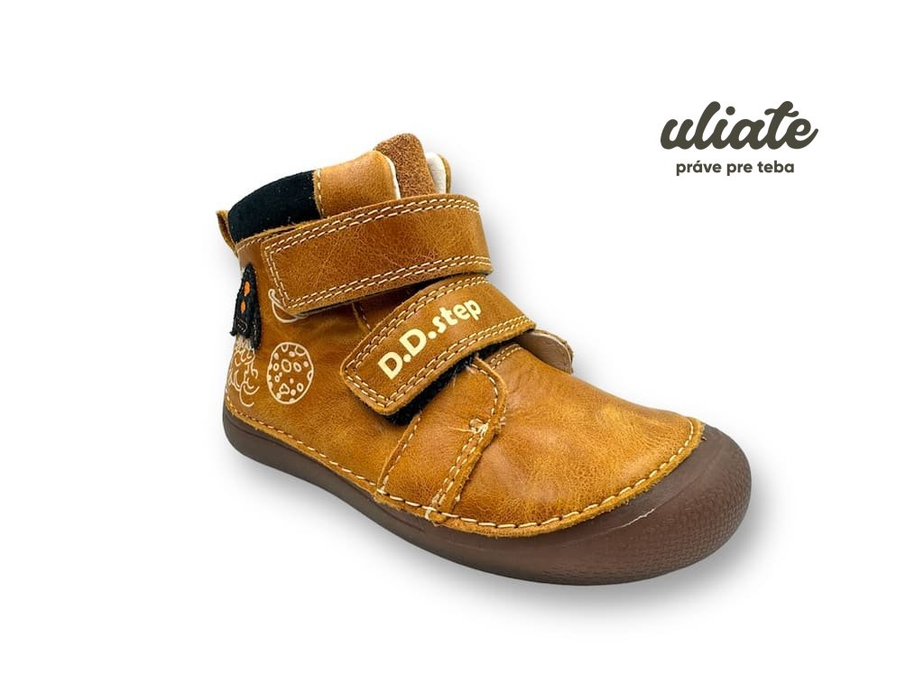 D.D.Step A063-42719AM chocolate – prechodné barefoot: koža, 0 mm drop, pružná podrážka 063, gumený okop, 2× suchý zips; sedia ako uliate.