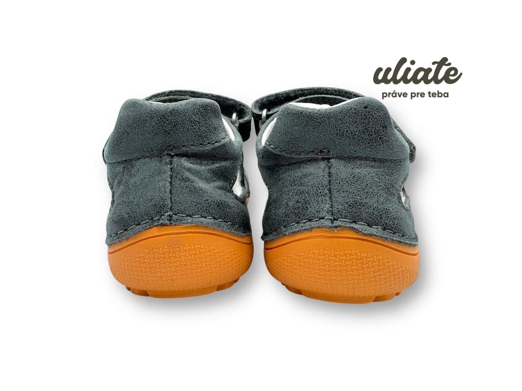 Kožené barefoot sandále s prirodzene širokou špičkou, plochou flexibilnou podošvou, zapínaním na suchý zips a vyberateľnou rovnou stielkou. Ľahké, priedušné a ideálne na jar/leto.