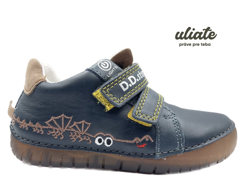D.D.Step S050-391M royal blue – detské kožené topánky s LED
