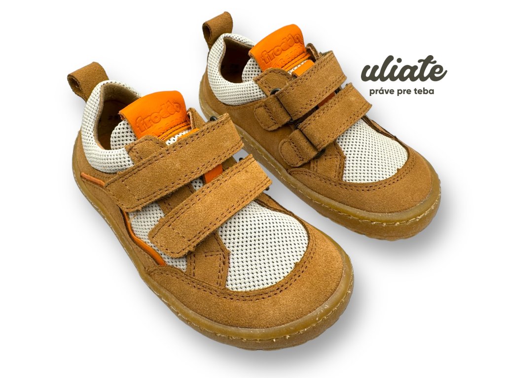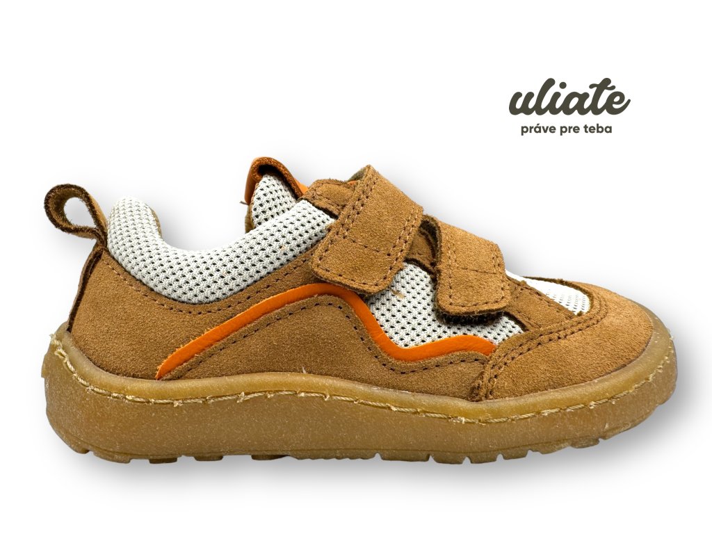 Froddo Barefoot Base v odtieni brown sú univerzálne detské barefoot tenisky na jar, leto a jeseň. Tenká flexibilná podrážka podporuje prirodzený došľap a široká špička rešpektuje prsty (aj dominantný palec). Do lejaku zvoľ skôr gumáky, doma pohodlné papuče. O dlhú výdrž sa postará správna starostlivosť o obuv a užitočné doplnky. Sadnú ako uliate.