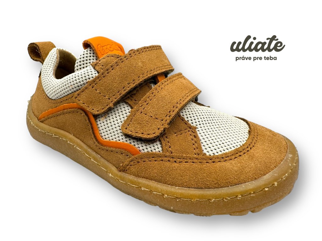 Froddo Barefoot Base brown – ľahučké detské barefoot tenisky so širokou špičkou, 0 mm dropom a 2× suchým zipsom – do škôlky aj na ihrisko.