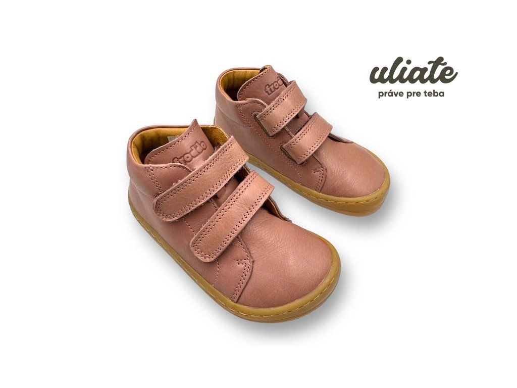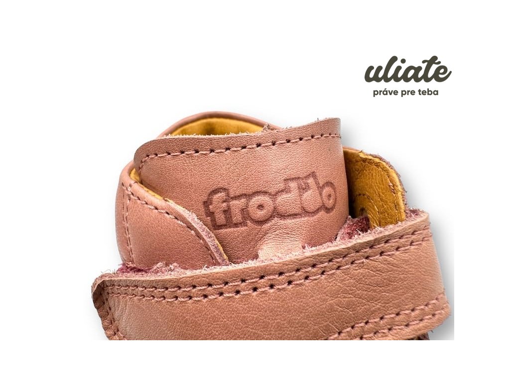 Froddo Barefoot First Step Dark Pink sú mäkké prechodné (celoročné) topánky pre začínajúcich chodcov. Kožený zvršok bez membrány dopĺňa kožená podšívka a vyberateľná antibakteriálna kožená stielka. Podošva je tenká, veľmi ohybná a so zlepšeným záberom na mokrej dlažbe. Dvojitý suchý zips rýchlo obuje a dobre dotiahne aj užší členok. Ak je dieťatko ešte najmä v štádiu lezenia a státia, zvoľ najprv mäkké capáčky.