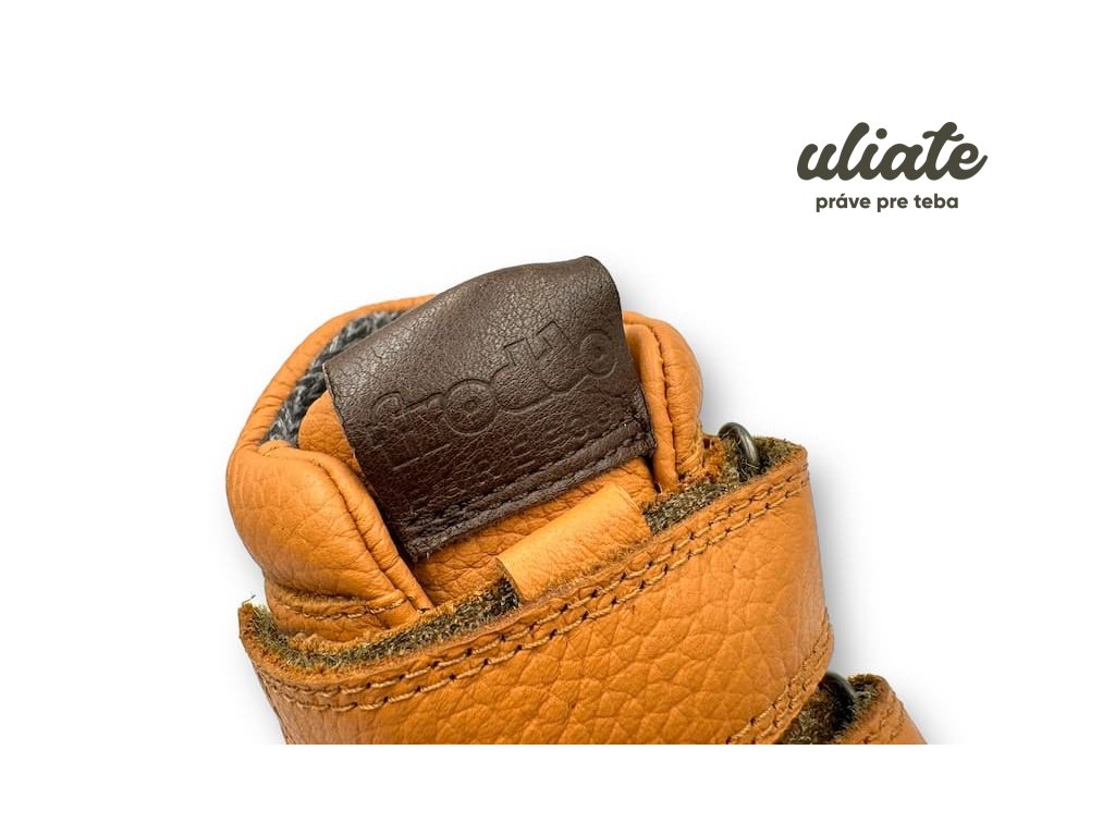 Prechodné barefoot topánky z vodoodpudivej kože s TEX membránou (vodeodolná & priedušná) a veľmi ohybnou Lifolit® podrážkou. Široká špička, 0 mm drop, rýchle obúvanie na 2× suchý zips.
