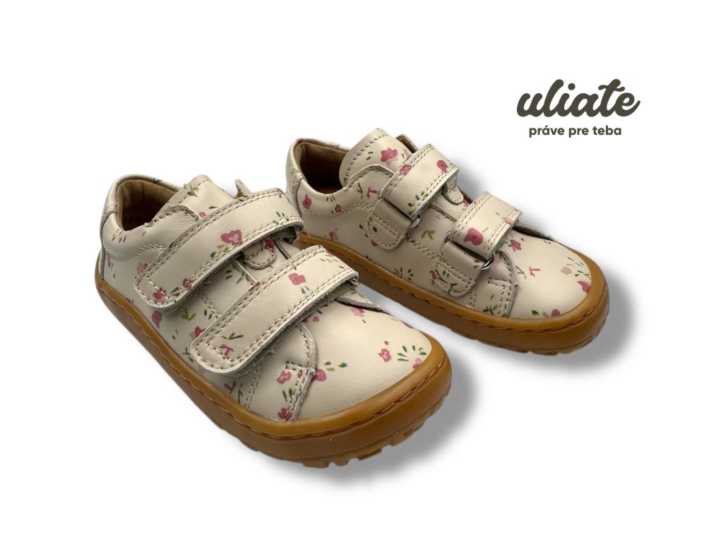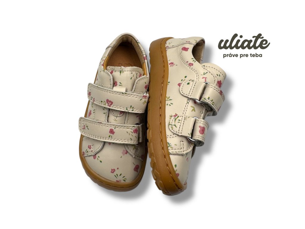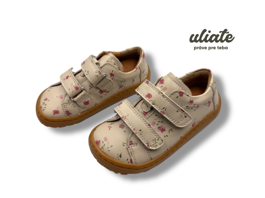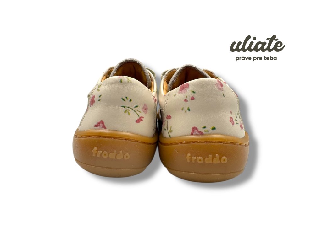 Froddo Baze Flowers sú ľahké detské barefoot topánky na bežné nosenie do škôlky, školy aj mesta. Hladká koža s potlačou je príjemná na údržbu, kožená podšívka bez chrómu podporuje komfort pri nosení a vyberateľná antibakteriálna stielka z mikrovlákna uľahčí vetranie aj kontrolu veľkosti. Podošva Lifolit® je oproti starším modelom Baze mäkšia a ohybnejšia, zároveň má lepší grip na bežné mestské povrchy. Ak preferujete túto značku, pozrite si aj ďalšie modely Froddo.