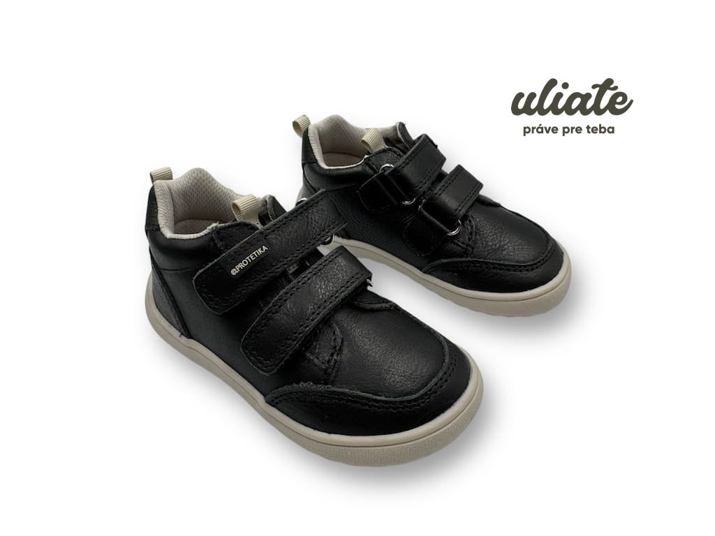 Protetika Alan Black: kožené barefoot tenisky so širokou špičkou, nulovým dropom a ohybnou podrážkou – univerzálne do školy aj mesta.