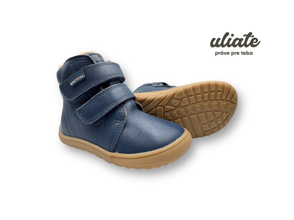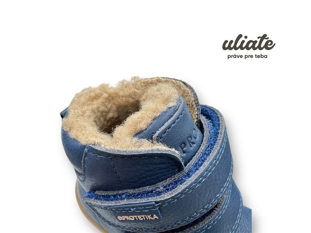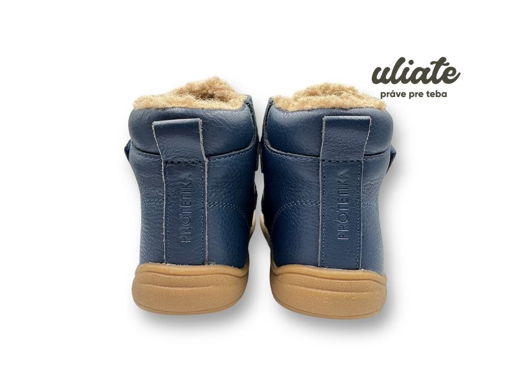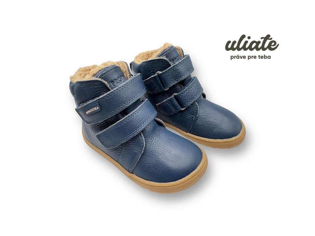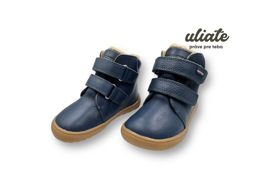 Teplé zimné barefoot topánky s membránou Pro-Tex v tmavomodrej. Široká špička, nulový drop, ohybná podrážka a 2× suchý zips – doladíš fit, aby sadli ako uliate.