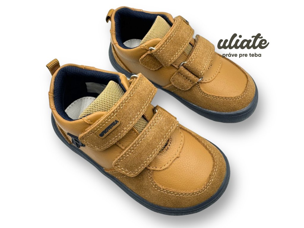 Celokožené celoročné/prechodné barefoot topánky s ohybnou tenkou podrážkou (0 mm drop), priestrannou špičkou a 2× suchým zipsom. Ľahké na každý deň – sadnú ako uliate.