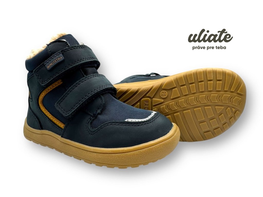 Zateplené zimné barefoot topánky s membránou PRO-TEX, hrejivou kožušinkou, zero dropom a ohybnou gumovou podrážkou. 2× suchý zips pre rýchle obúvanie a dobré dotiahnutie.