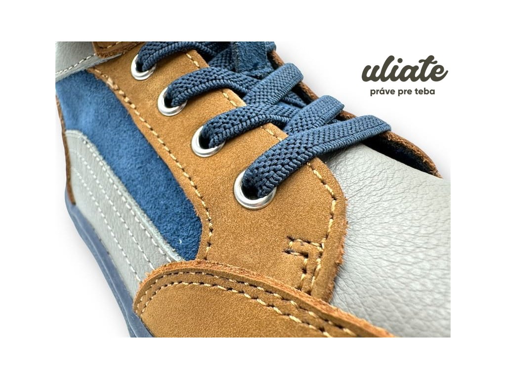 Koža + priedušný textil, nová odľahčená ohybná podrážka s nulovým dropom a priestranná špička – istota kroku do škôlky aj na ihrisko. Zapínanie 1× suchý zips + elastické šnúrky a opora okolo päty, aby sadli ako uliate.